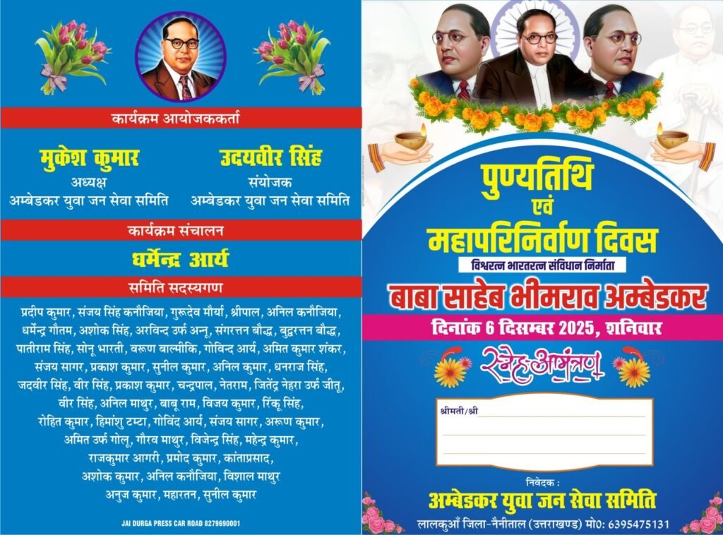 कार्यक्रम में श्रद्धांजलि गोष्ठी भी आयोजित होगी, जिसमें नैनीताल के लोकप्रिय सांसद अजय भट्ट, उत्तराखंड अनुसूचित जाति आयोग के अध्यक्ष मुकेश कुमार, लालकुआँ विधायक डॉ. मोहन सिंह बिष्ट सहित क्षेत्र के कई जनप्रतिनिधि और समाजसेवी मौजूद रहेंगे। सभी अतिथि बाबा साहब की प्रतिमा पर पुष्प अर्पित कर अपनी श्रद्धांजलि देंगे। जनसभा को संबोधित करने की भी तैयारी है।