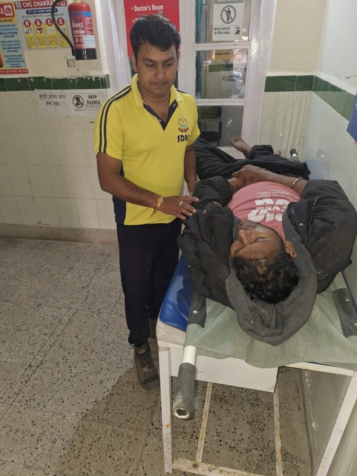 जनपद देहरादून, चकराता क्षेत्रान्तर्गत त्यूनी रोड पर स्कूटी सवार हुए दुर्घटनाग्रस्त — SDRF टीम ने 60 मीटर गहरी खाई से घायल को बचाया