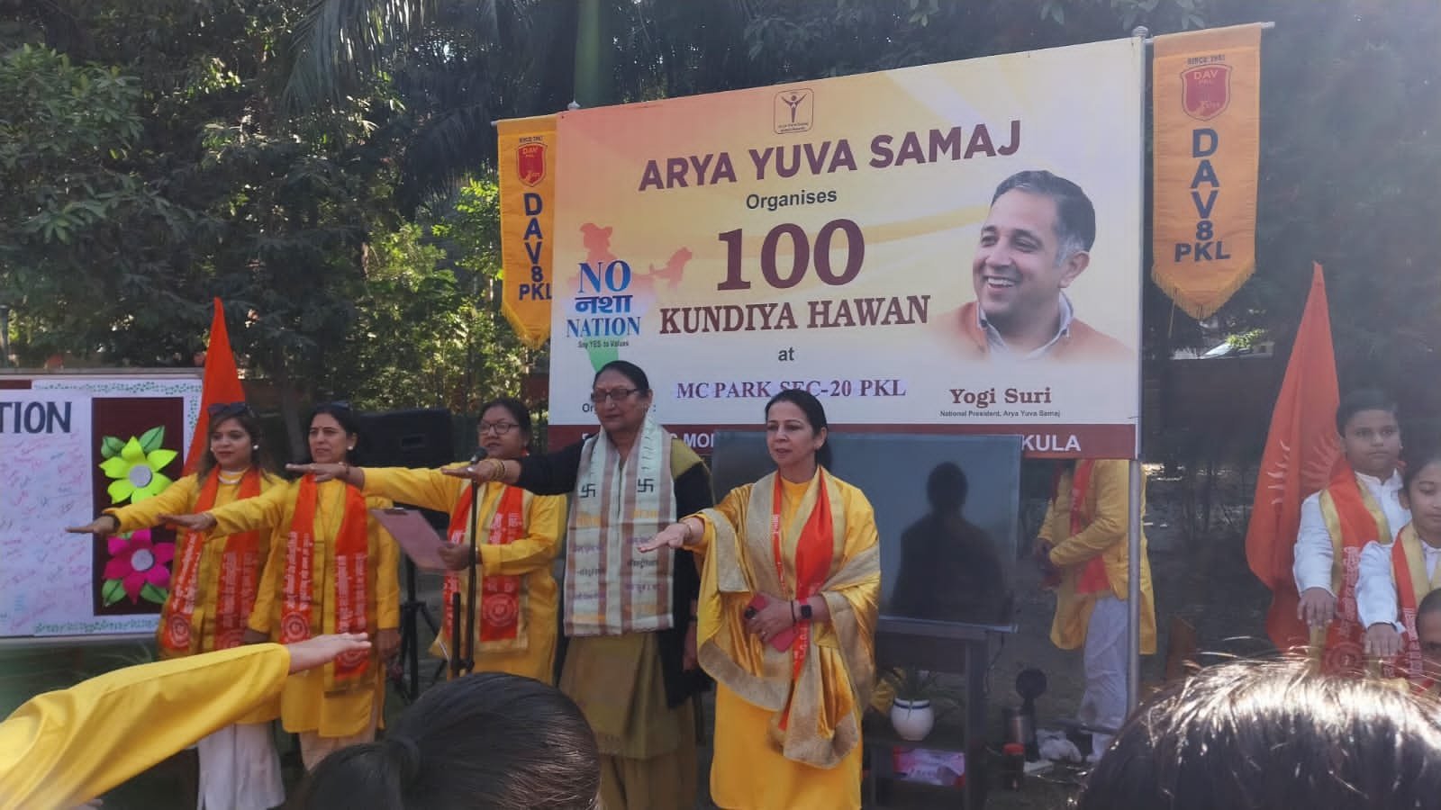 नशा-मुक्ति के संकल्प को मजबूत करने के लिए 100 कुंडीय यज्ञ का आयोजन किया गया। विद्यालय की प्रबंधक श्रीमती जस्करण हरिका मुख्य अतिथि रहीं।