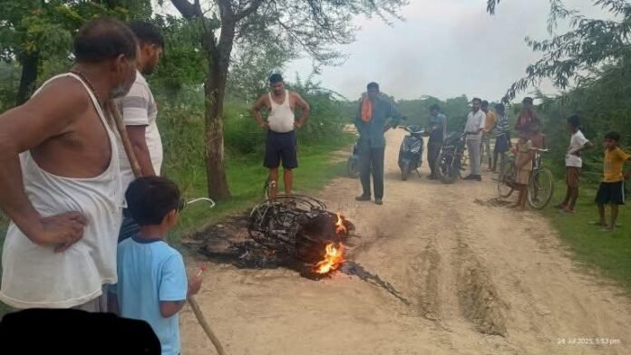 इस संबंध में थाना प्रभारी बृजेश सिंह ने बताया कि उन्हें बबुरी गांव में स्कूटी में आग लगने की सूचना मिली थी।