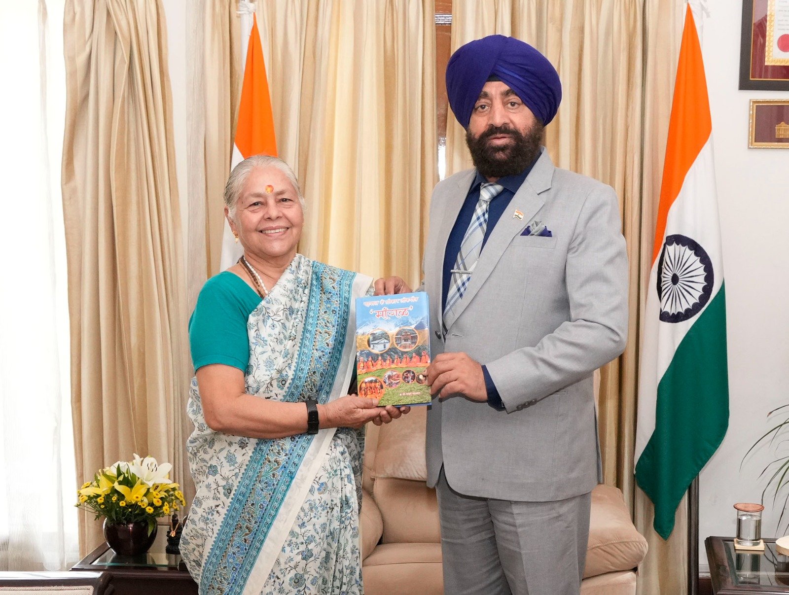 शुक्रवार को राजभवन में राज्यपाल लेफ्टिनेंट जनरल गुरमीत सिंह (से नि) से पद्मश्री डॉ. माधुरी बड़थ्वाल ने शिष्टाचार भेंट की। उन्होंने राज्यपाल को स्वलिखित पुस्तक गढ़वाल के संस्कार लोकगीत ‘‘मांगल’’ भेंट की। लोक गायिका डॉ. माधुरी बड़थ्वाल लोक संगीत, लोक साहित्य एवं संस्कृति संरक्षण के लिए कार्य कर रही हैं। संस्कृति के संरक्षण एवं इसमें योगदान के लिए उन्हें कई पुरस्कारों से सम्मानित किया जा चुका है।