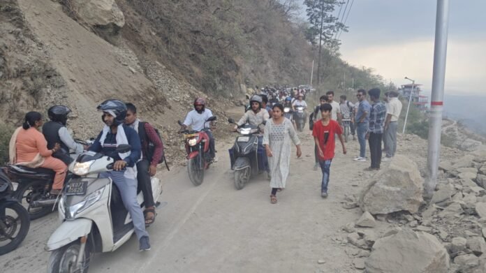 मसूरी देहरादून मार्ग पर कोल्हूखेत के निकट गलोगी नामक स्थान पर पहाड से लगातार गिर रहे मलबे के कारण मार्ग बाधित