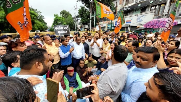 भारतीय जनता पार्टी महानगर देहरादून के सम्मानित अध्यक्ष श्री सिद्धार्थ अग्रवाल के नेतृत्व में राजपुर रोड देहरादून स्थित कांग्रेस भवन का घेराव किया गया। इस प्रदर्शन का मुख्य उद्देश्य कांग्रेस नेताओ द्वारा माननीय प्रधानमंत्री नरेन्द्र मोदी की आदरणीय स्वर्गीय माता के प्रति की गई अमर्यादित एवं अपमानजनक टिप्पणी के विरोध को दर्ज कराना था।