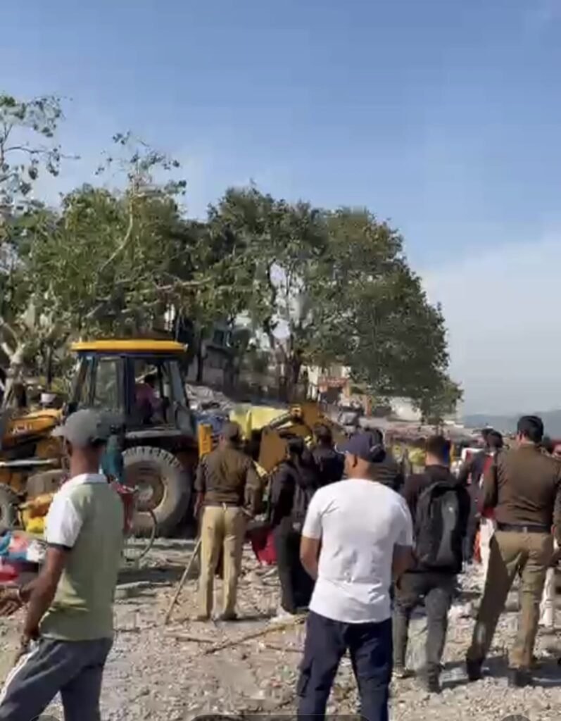 डीएम के निर्देश पर एसडीएम एवं नगर आयुक्त ऋषिकेश के नेतृत्व में चंद्रभागा में अवैध अतिक्रमण ध्वस्त